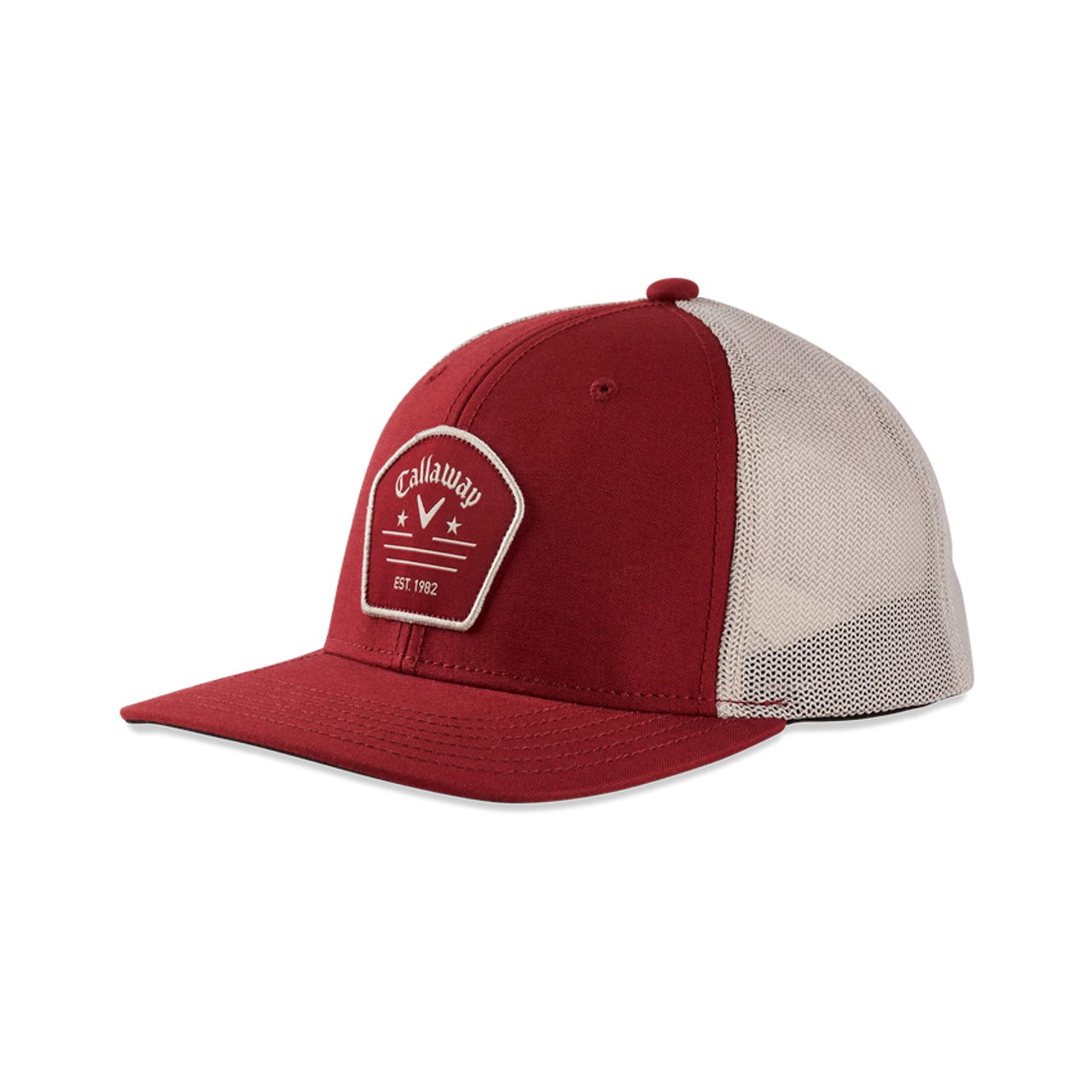 Callaway Trucker Adjustable Cap features a breathable stretch mesh, terry cloth sweatband and a new patch logo come together for a great retro design.