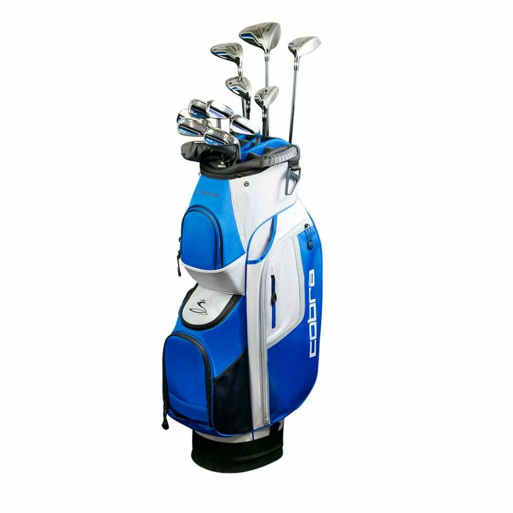 The men’s Cobra FLY-XL complete set includes a full bag of lightweight and forgiving clubs that deliver easy launch and distance for the beginner or aspiring golfer. The 13 piece set includes a driver, fairway wood, hybrid, blade putter, and a stand bag.
