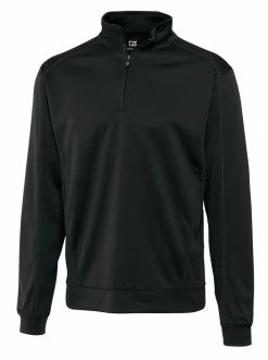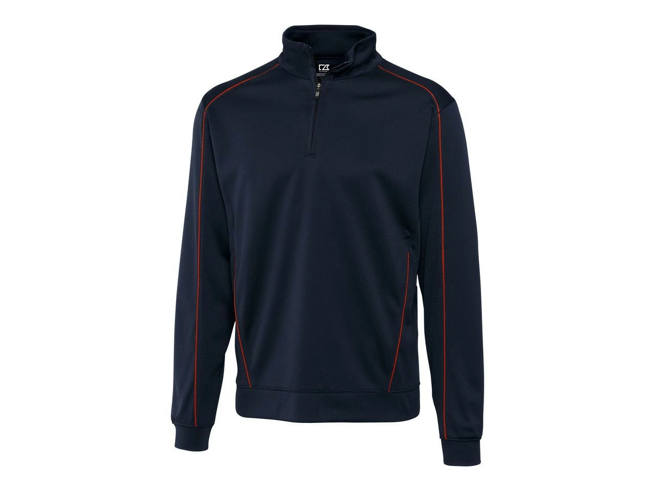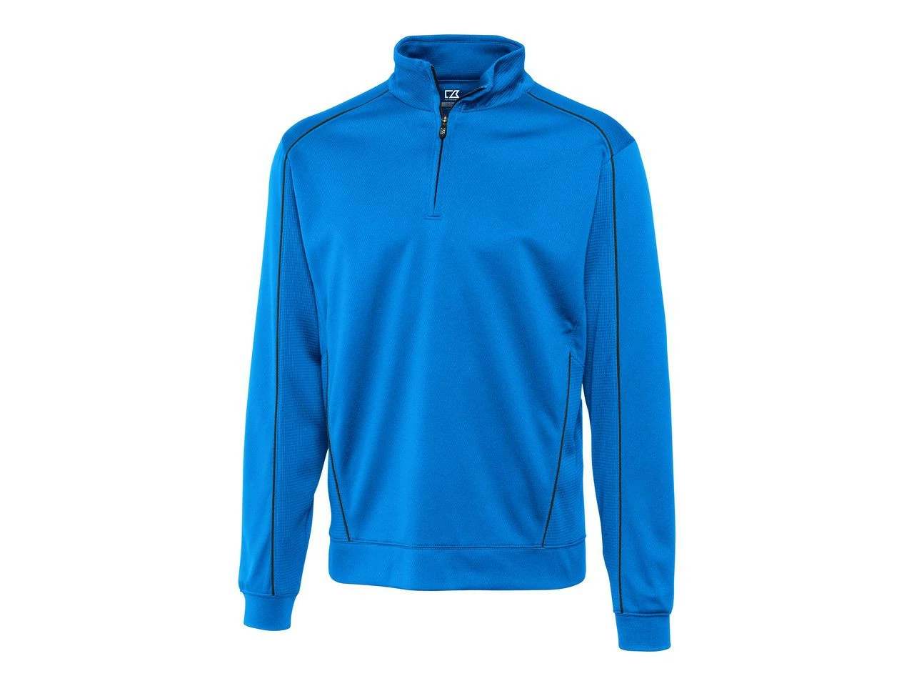 A sporty look from Cutter & Buck with details like dual-textured piecing and piping at the front and back, pieced sleeves, and self-fabric mock, hem and cuffs. The moisture-wicking fabric enhances comfort and performance.