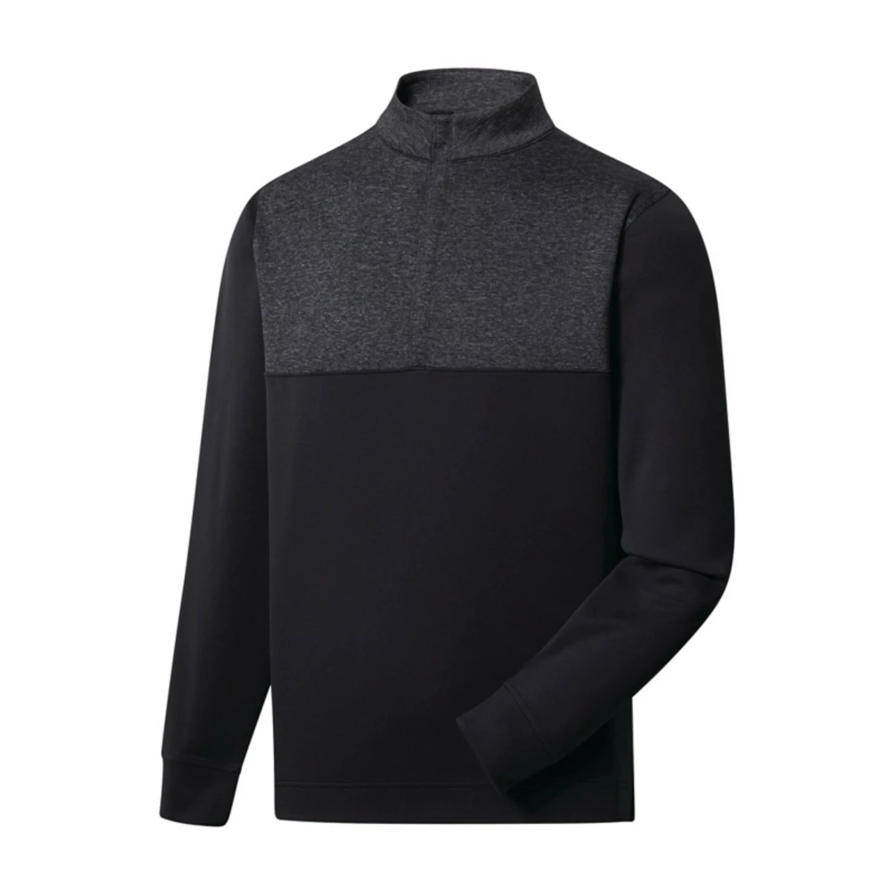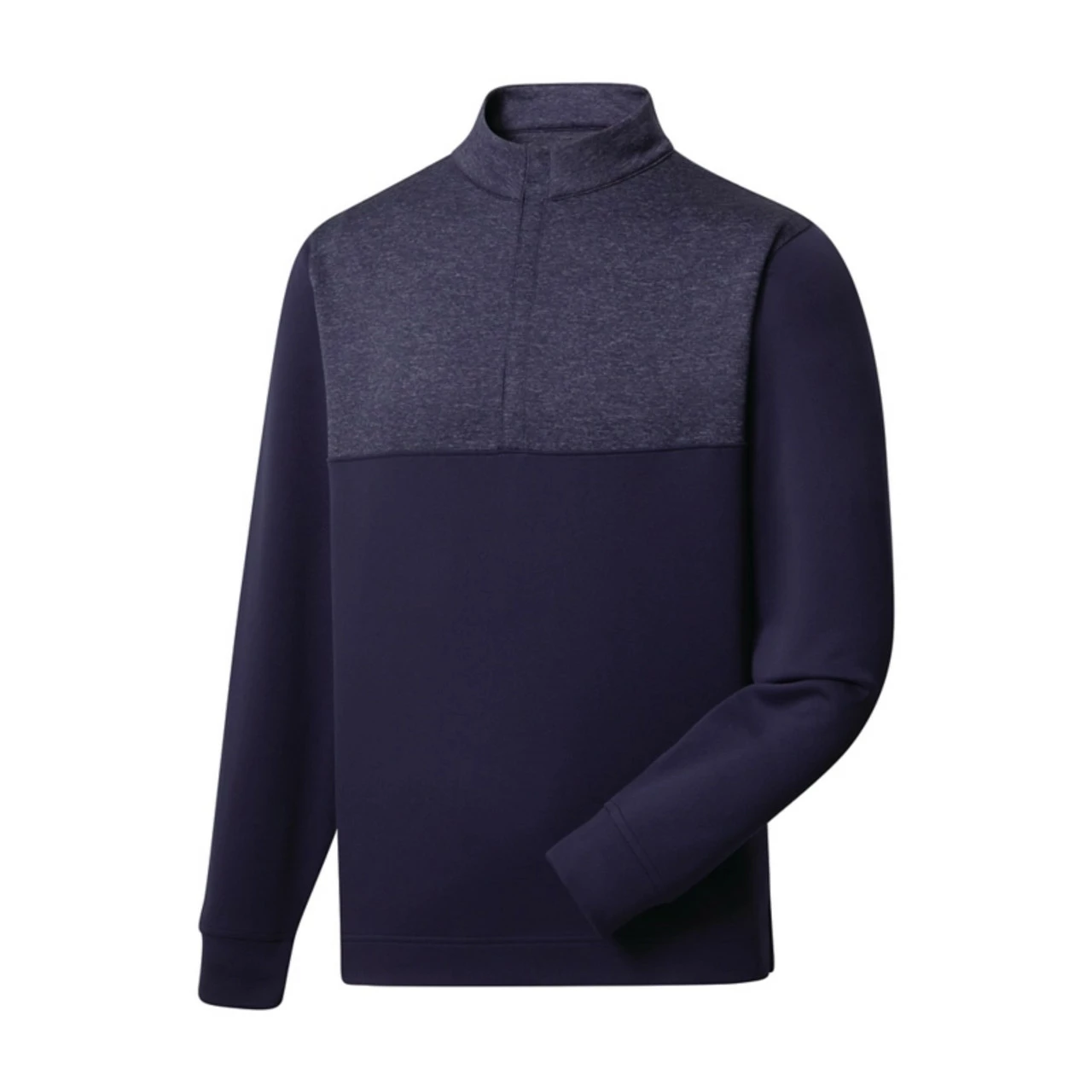 The FootJoy Heather Yoke Half Zip Midlayers are versatile pieces that allow the player to adapt to changing weather conditions. The four-way stretch shell allows free range of motion throughout the golf swing.