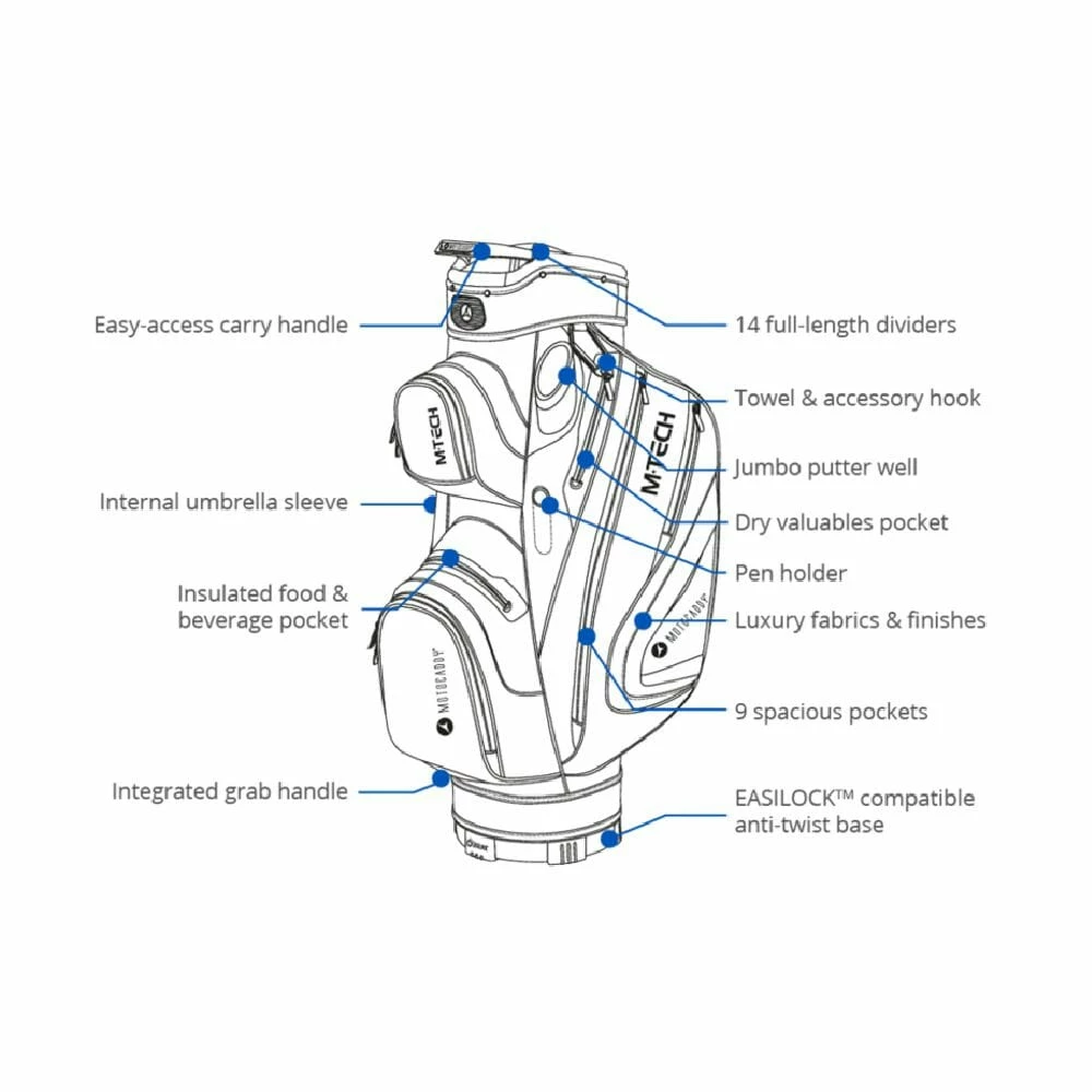 Styled to perfectly complement the luxury M-TECH electric trolley, the M-TECH bag combines premium materials with cutting-edge design and wide-ranging features.