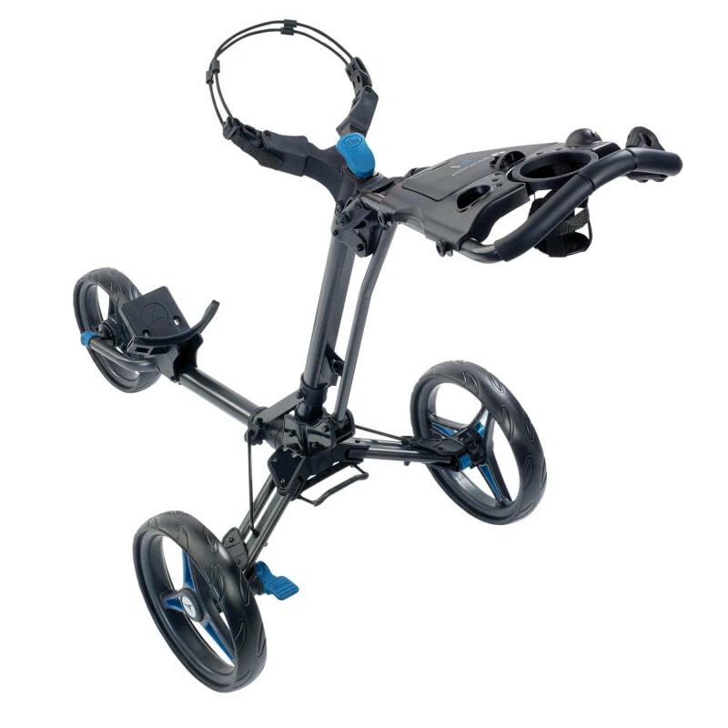 The Motocaddy P1 cart with it’s one step folding mechanism is ready for use within seconds. The easy grip handle features adjustable height control and an integrated storage section for tees, ball etc. Other features are oversized wheels easy run wheels and foot brake along with adjustable bag supports to fit any bag. All this along with the Easylock base system which keeps your bag in place whilst out on the course.