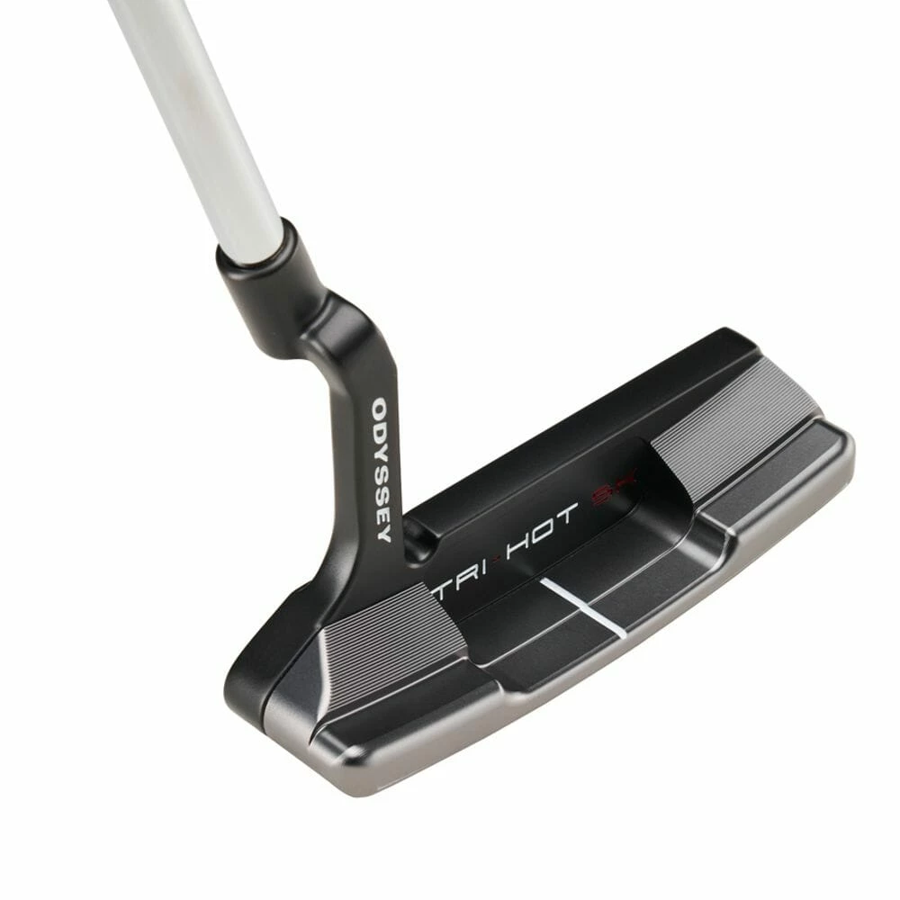 The Tri-Hot 5K Two puter is a classic shape heel toe weighted putter with moderate toe hang and a crank hosel, suitable for strokes that have moderate arc and face rotation.