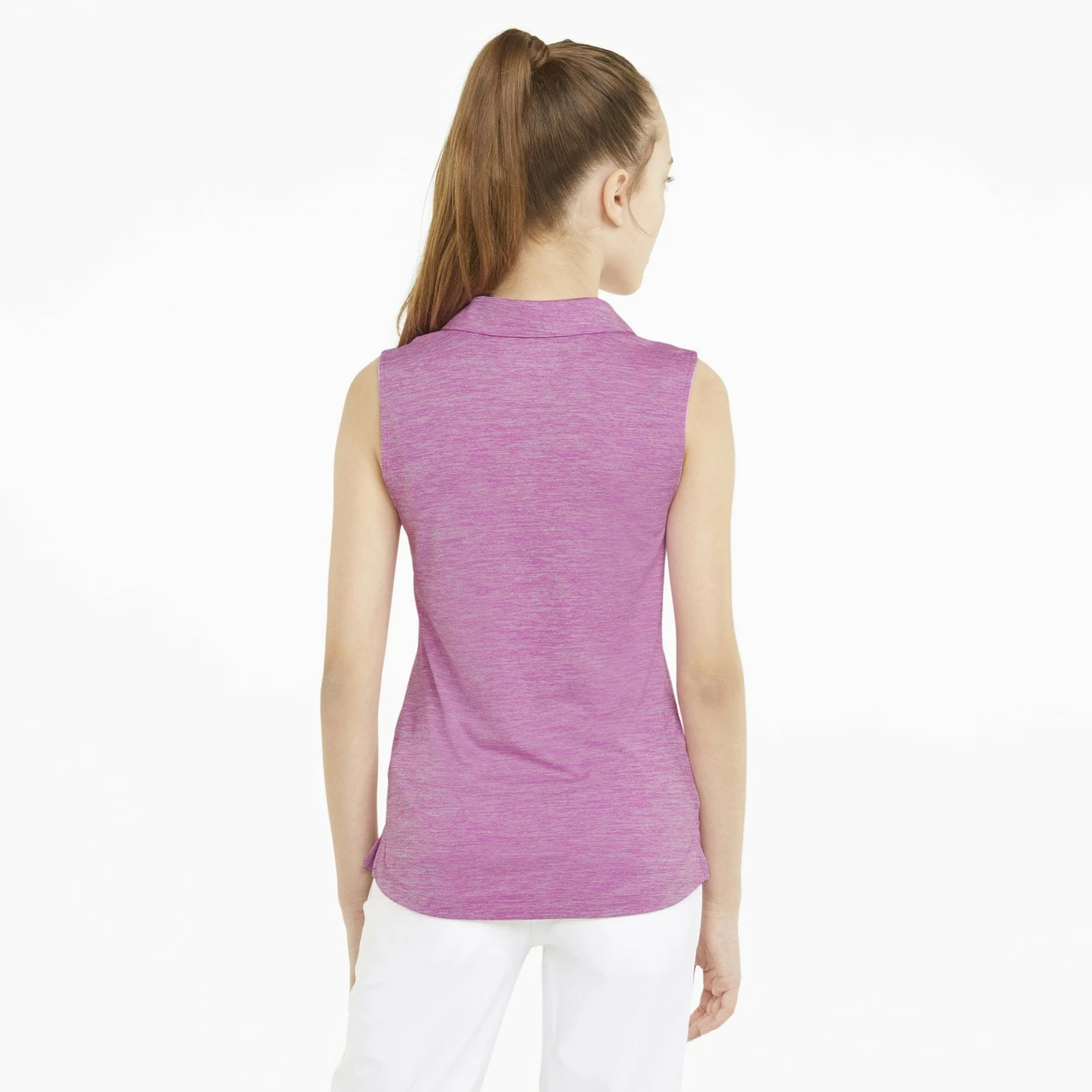 Look good and play with confidence in the Puma Girls Sleeveless Heather Polo. The soft heathered fabric with DRYCELL technology to wick moisture, this polo will keep you cool, dry, calm, collected and styling through your round.