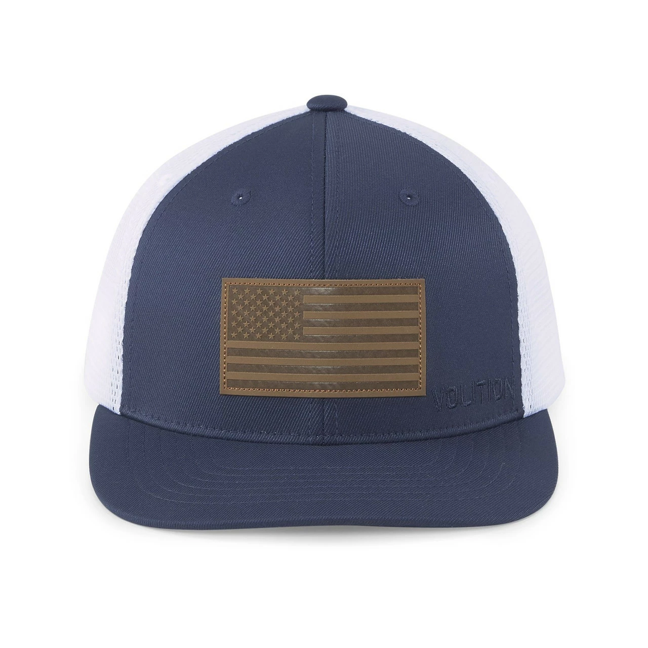 Show your pride with the Volition Heritage Trucker Snapback Cap, featuring a leather embossed patch that displays Old Glory in style.