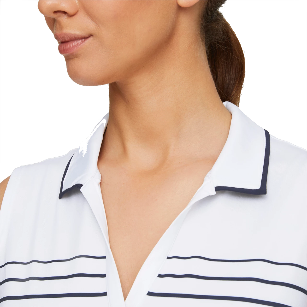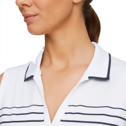 The striped appearance of this sleeveless golf polo shirt is a good look for both the course and the clubhouse. And, thanks to moisture-wicking technology, it performs too.