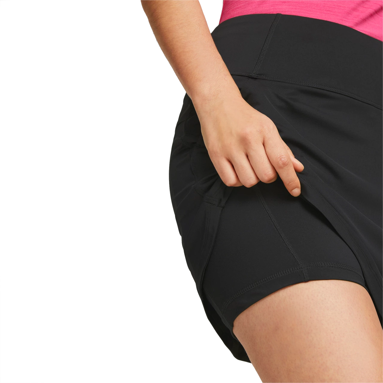 Introducing PWRMESH, an all-new propietary fabric of PUMA. Featuring a breathable mesh waistband with shape retention, this high-hise knit skirt is designed to fit close to the body without flaring.