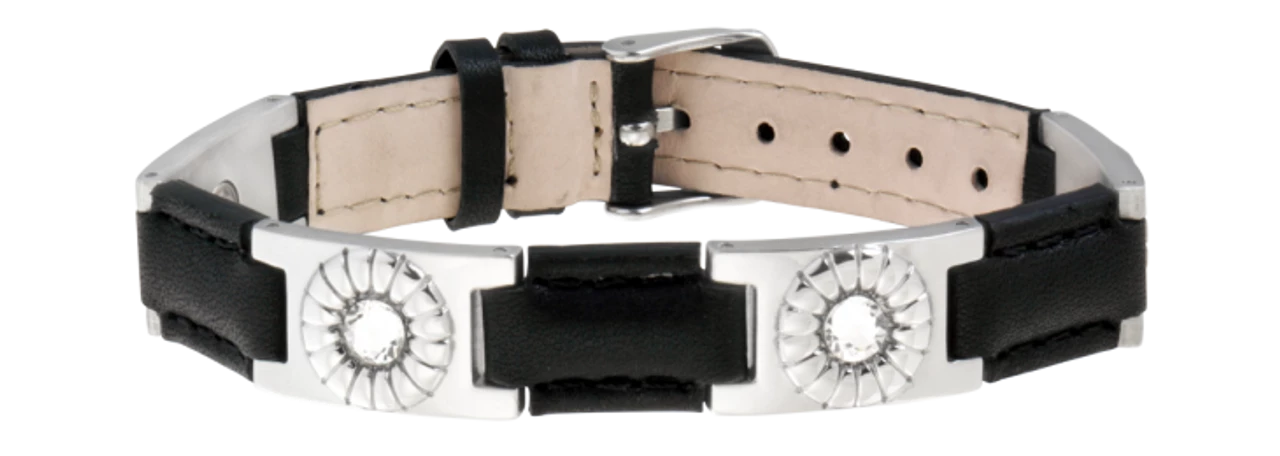 Sabona Black Leather Gem Stainless Magnetic Bracelet features: