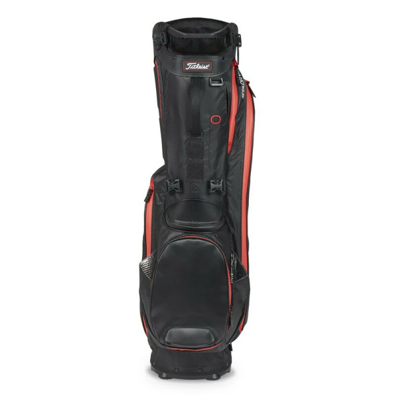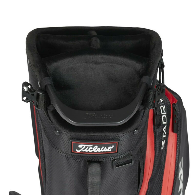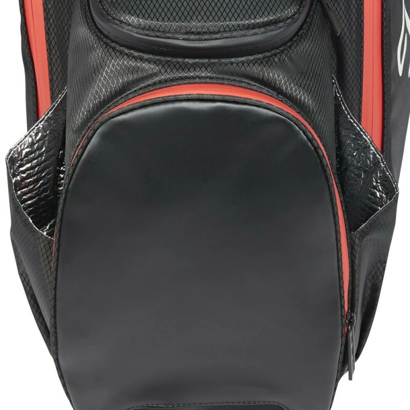 Stay comfortable and prepared on the golf course with the new Titleist Players 5 StaDry™ Bag. This lightweight, waterproof bag packs superior organisation and greater accessibility in a stylish, sleek design. The 5-way top cuff offers extra protection for your clubs and easy access to them, while inside you’ll find plenty of pockets for tees, gloves, valuables, extra clothing—whatever you need. Thanks to seam-sealed zippers and durable waterproof construction, your clubs will stay safe from rain or mishaps even in inclement weather. When time’s about to run out or if you just need a quick pick-me-up, reach for the external lined drink sleeve without wasting time fishing around in other pockets. Plus, the premium double strap makes carrying a breeze come rain or shine! Now ready to go like never before with Titleist Players 5 StaDry™ Bag! Features a new internal stand mechanism for ultimate stability.