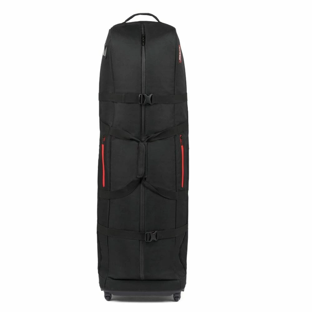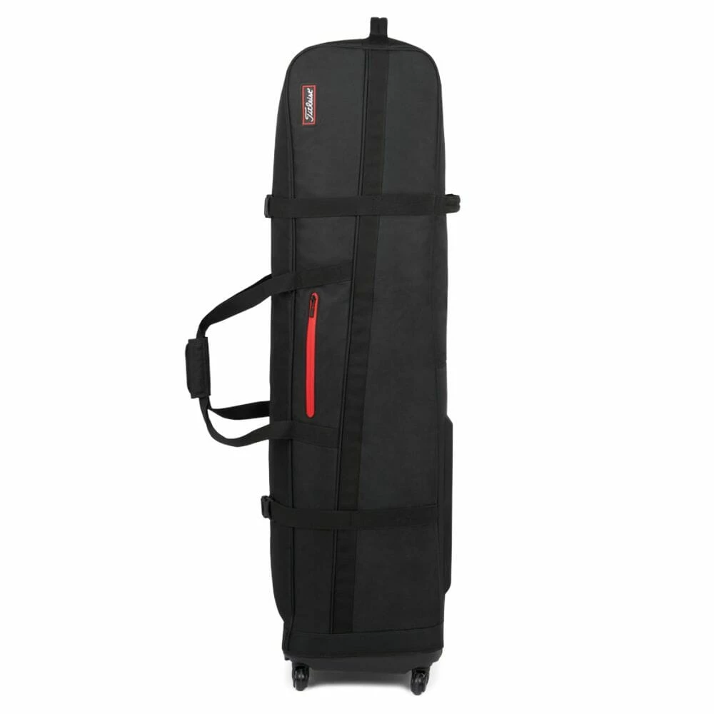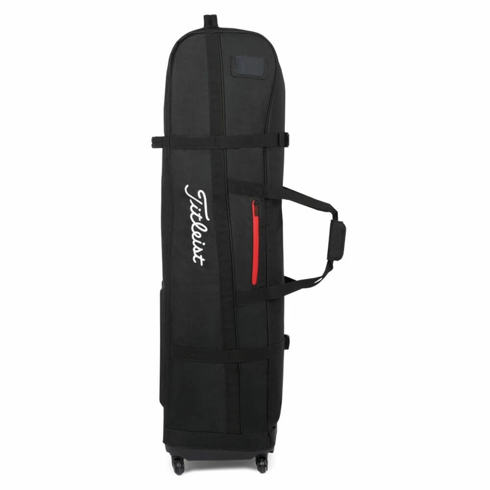 Titleist players Spinner flight/travel cover has a padded top to protect the heads of your clubs and features internal padded straps to keep your clubs secure during travel. Internal pockets for golf shoes etc and it will fit up to a 9.5″ bag. Titleist branding to outside with carrying handles.