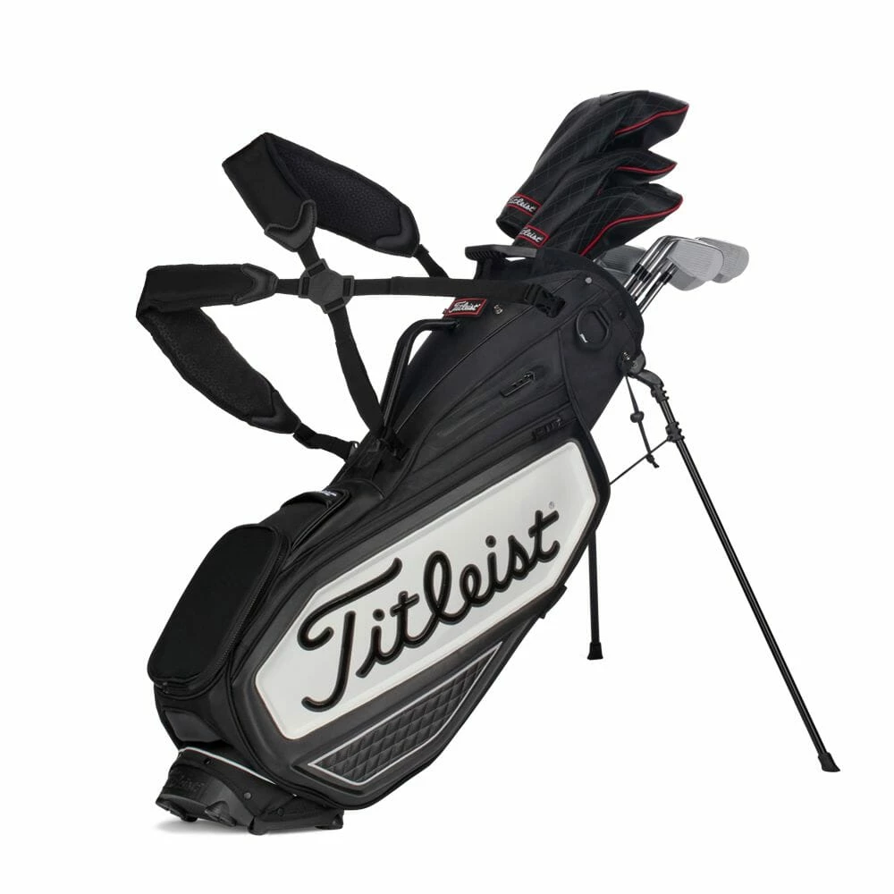 Titleist Premium stand bag available in Titleist staff colours, Tour inspired magnetic pocket with a performance stand system and premium cushioning strap.